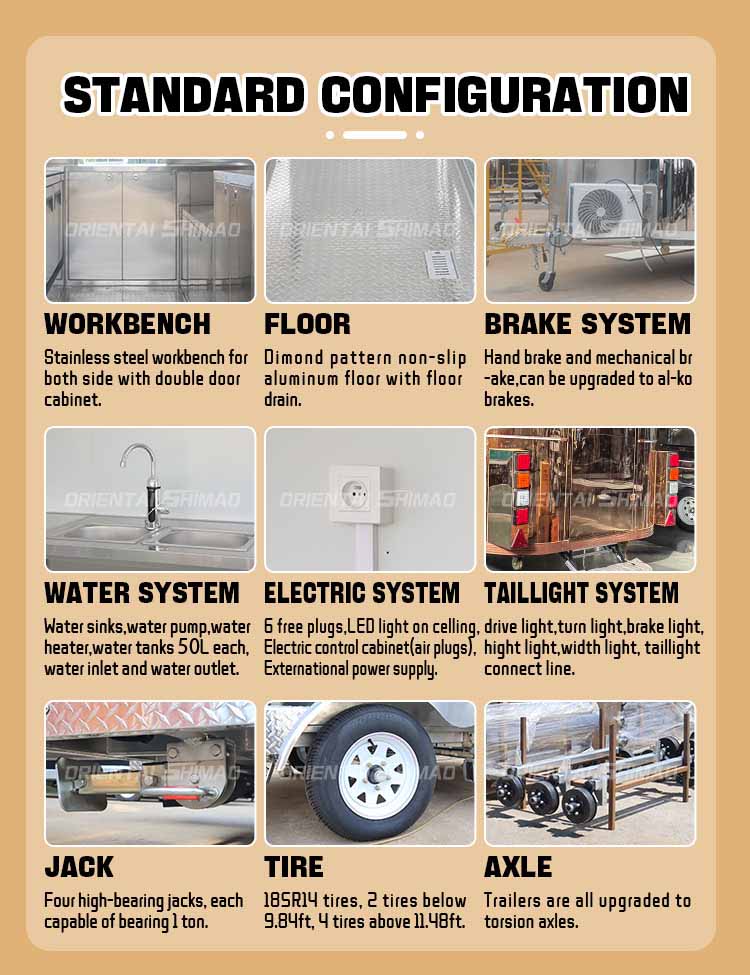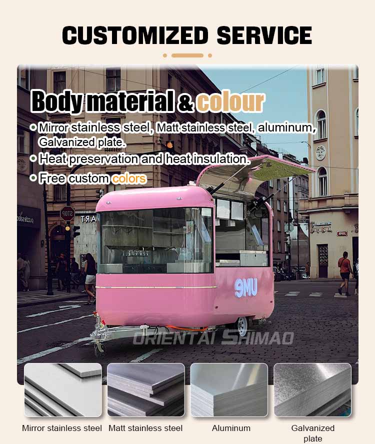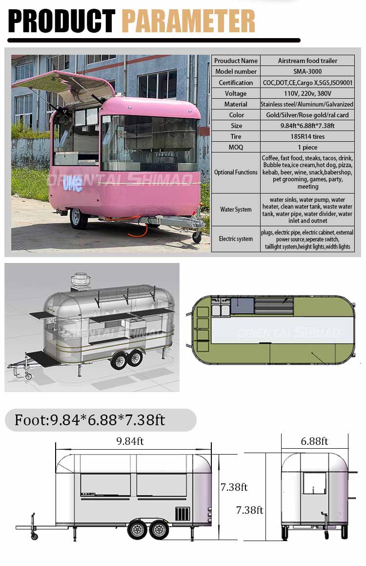 主材料には、耐食性と耐久性に優れ、さまざまな環境条件下でも安定した性能を維持できる高品質の304ステンレス鋼を採用し、当社のエアストリームフードトレーラー製品は、さまざまな課題に直面しても、優れた品質と機能を長期にわたって維持することができます。 304 ステンレス鋼の優れた耐食性により、トラックは酸化や錆びの影響を受けにくくなり、耐用年数が大幅に延長されます。 304 ステンレス鋼の優れた耐食性により、トラックは酸化や錆びにくくなり、耐用年数が大幅に延長されます。