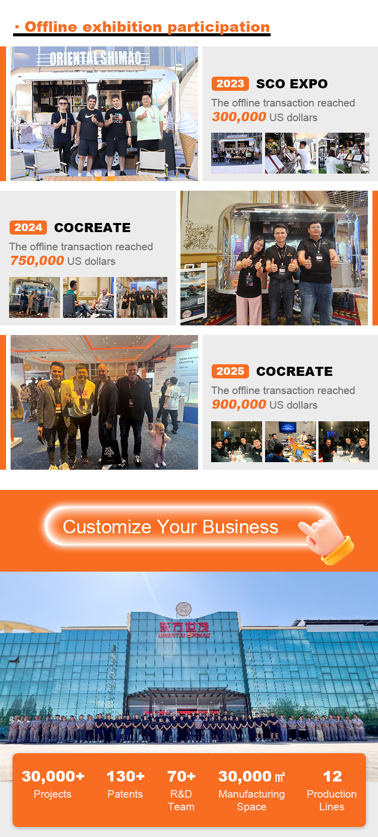 ニーズ分析とカスタマイズされた設計、材料の選択と調達、製造、内装設備の設置、外装装飾と看板、テストと品質管理、流通と設置、アフターサービスとメンテナンスに至るまで、あらゆる段階でお客様と協力します。
