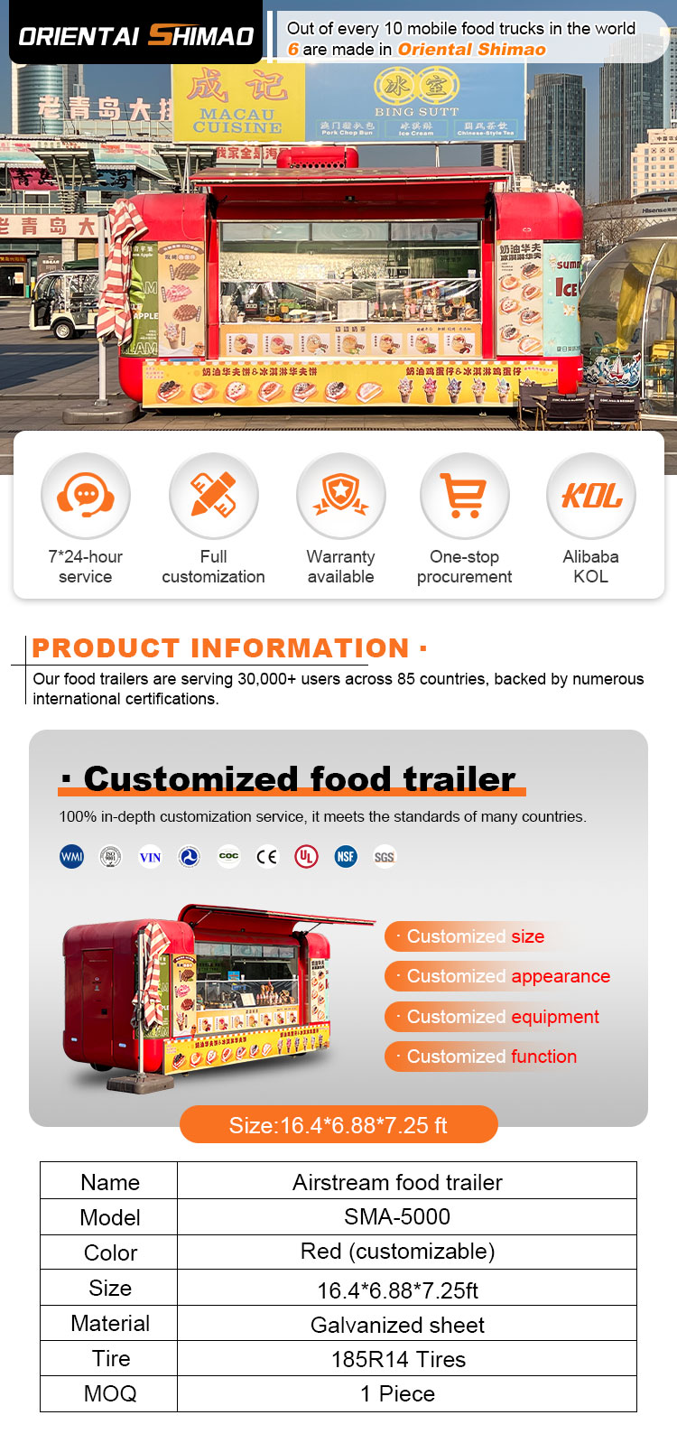 フードケータリングトレーラーの認証を提供できます:DOT、CE、SGS、SCI、ISO、COC、