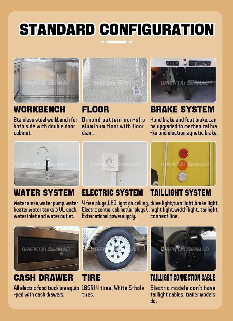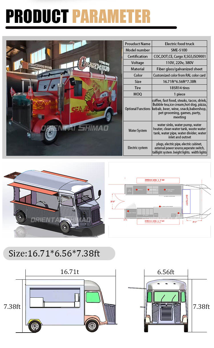 4.8mの熱い販売電気フードトラックのパラメーター仕様は次のとおりです。