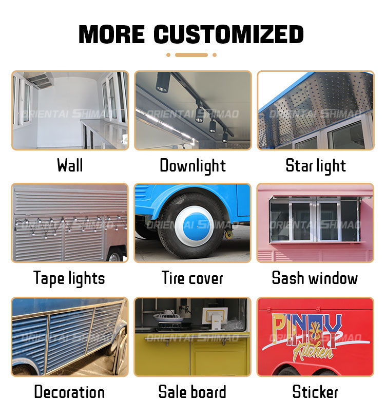 ホット販売エレクトリックフードトラックは、さまざまなカスタマイズされたソリューション、サイズのカスタマイズ、ロゴのカスタマイズ、内部カスタマイズなどをサポートしています。
