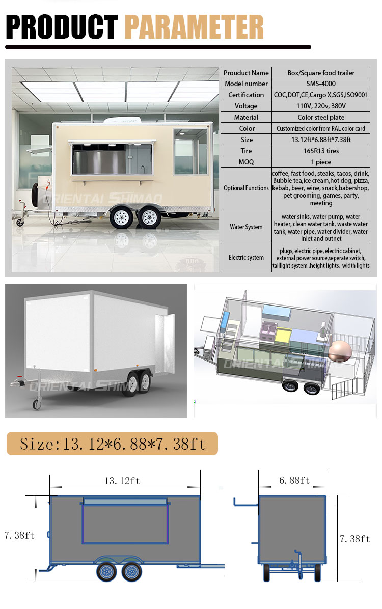 移動式フードカートの販売を提供できます 認証:DOT、CE、SGS、SCI、ISO、COC、