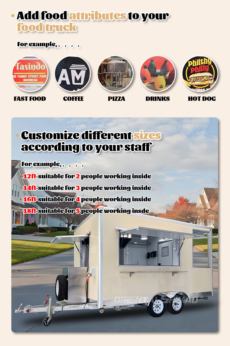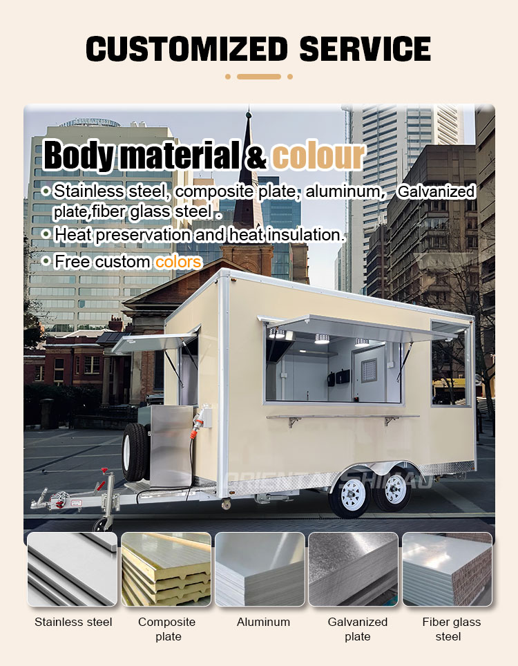 素材とプロセス:フードトラックの外観が美しく耐久性のあることを保証するために、高品質の素材と高度な製造プロセスを選択してください。