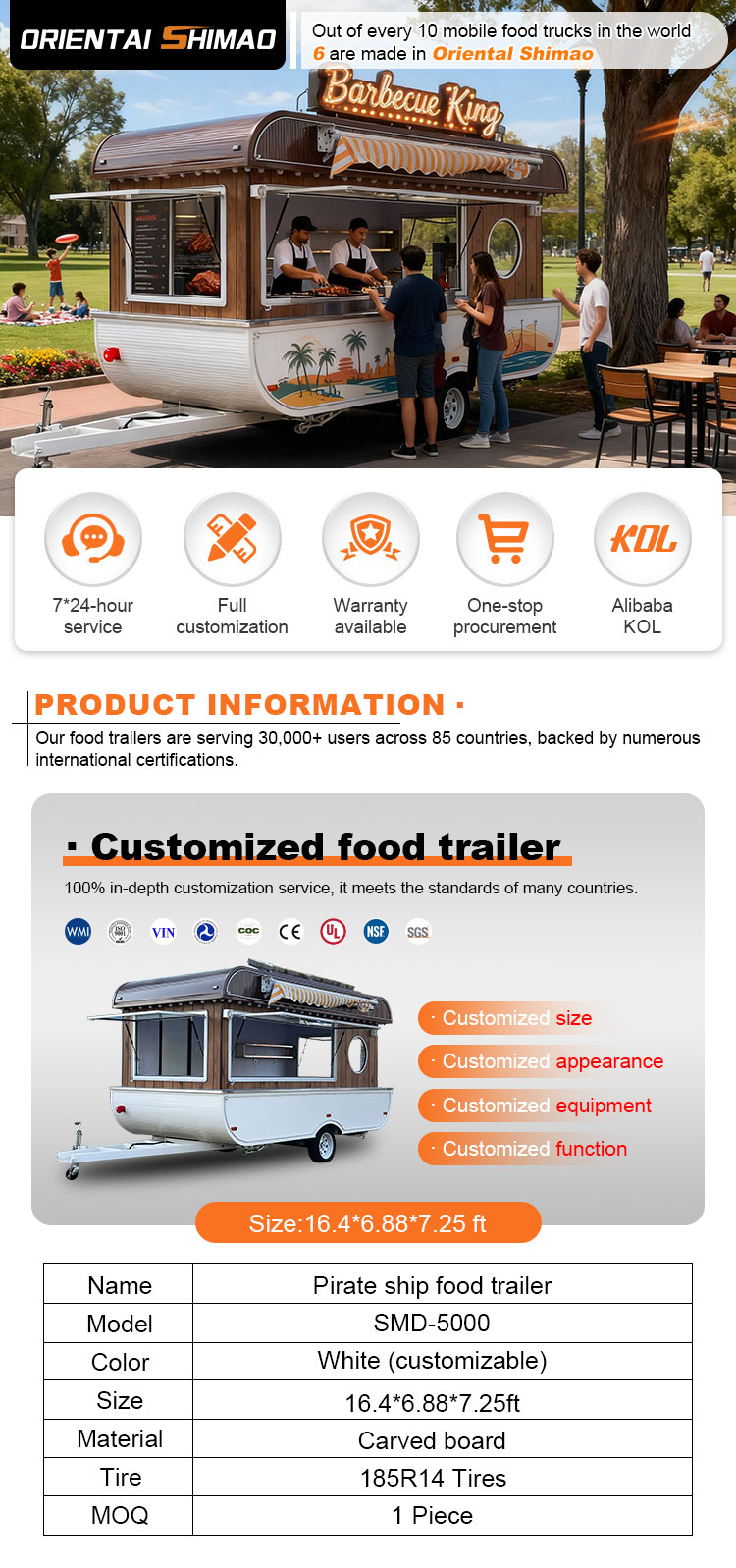 フードケータリングトレーラーの認証を提供できます:DOT、CE、SGS、SCI、ISO、COC、