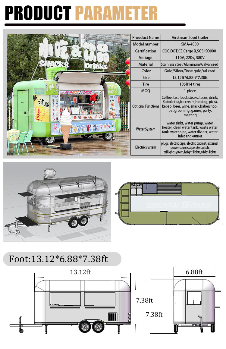 主材料には、耐食性と耐久性に優れ、さまざまな環境条件下でも安定した性能を維持できる高品質の304ステンレス鋼を採用し、当社のフルキッチン付きフードトレーラーは、さまざまな課題に直面しても、優れた品質と機能を長期にわたって維持することができます。 304 ステンレス鋼の優れた耐食性により、トラックは酸化や錆びの影響を受けにくくなり、耐用年数が大幅に延長されます。 304 ステンレス鋼の優れた耐食性により、トラックは酸化や錆びにくくなり、耐用年数が大幅に延長されます。