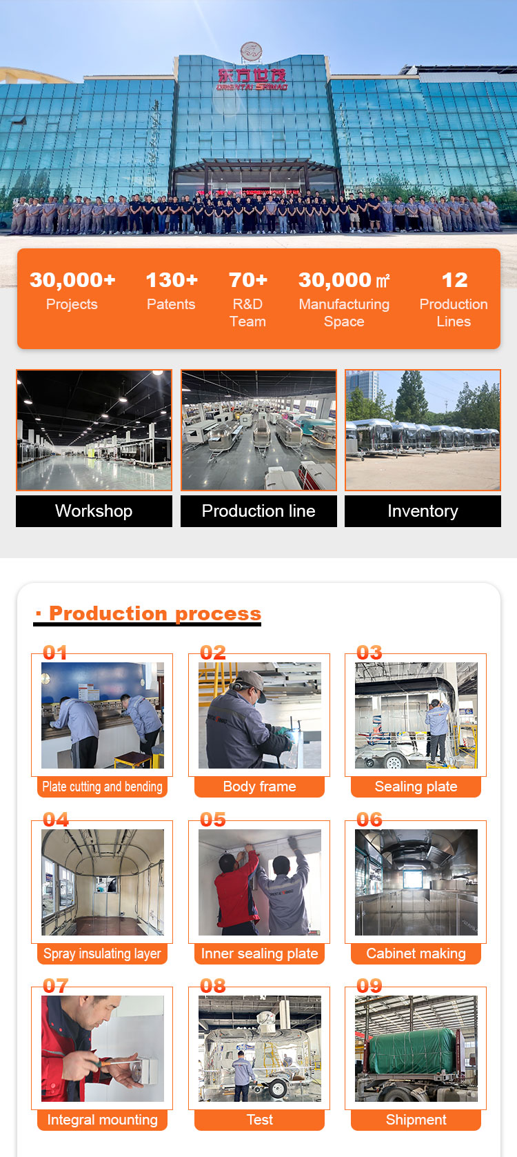 追加機能:顧客のニーズに応じて、冷蔵・鮮度保持、加熱・保温、防水・制電などの追加機能を追加し、フードトラックの実用性と安全性を高めます。
