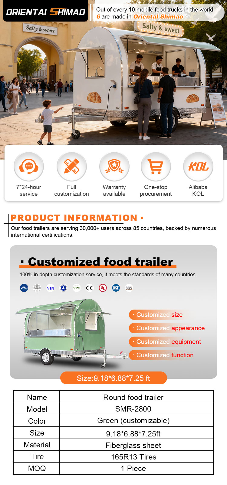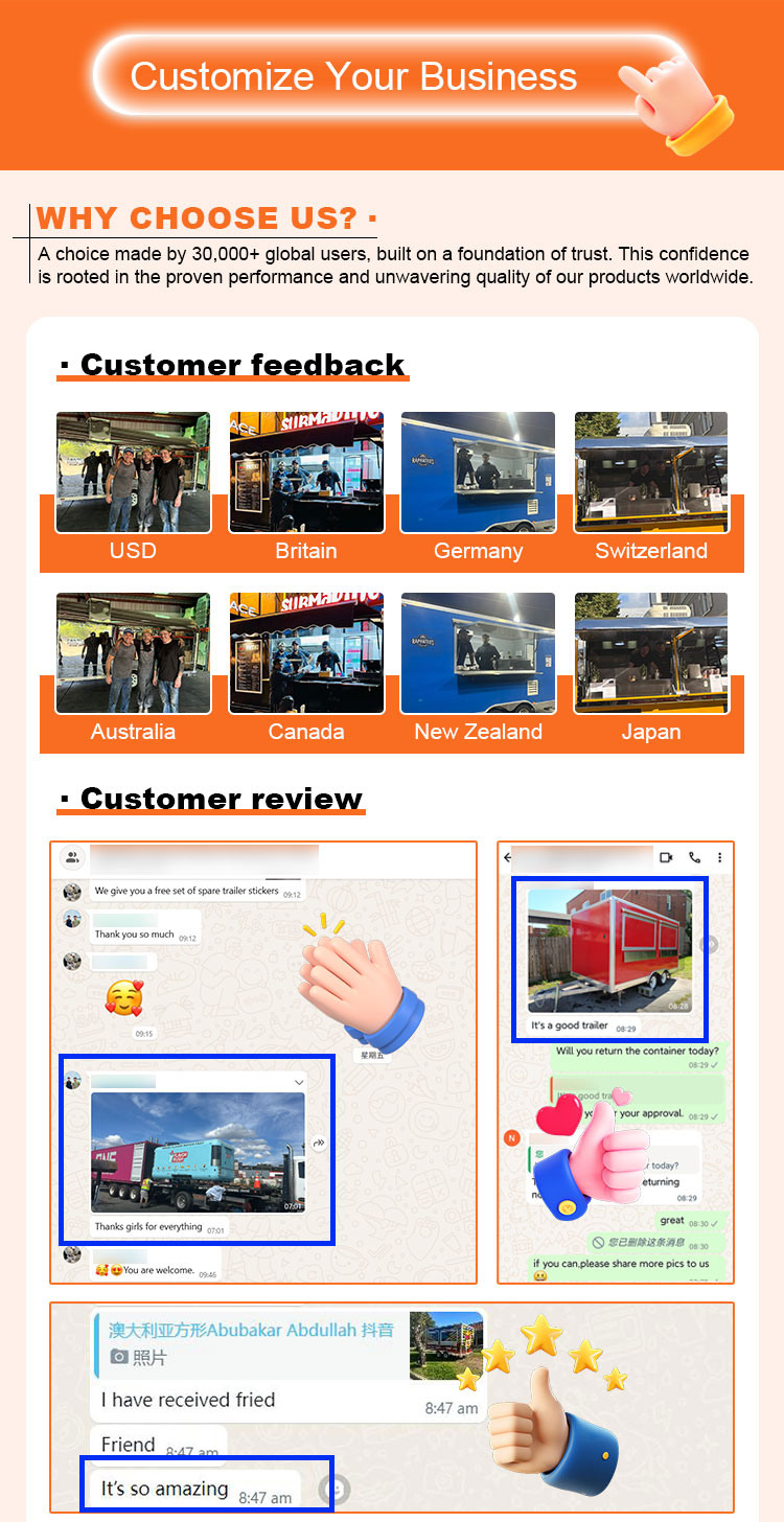 ニーズ分析とカスタマイズされた設計、材料の選択と調達、製造、内装設備の設置、外装装飾と看板、テストと品質管理、流通と設置、アフターサービスとメンテナンスに至るまで、あらゆる段階でお客様と協力します。