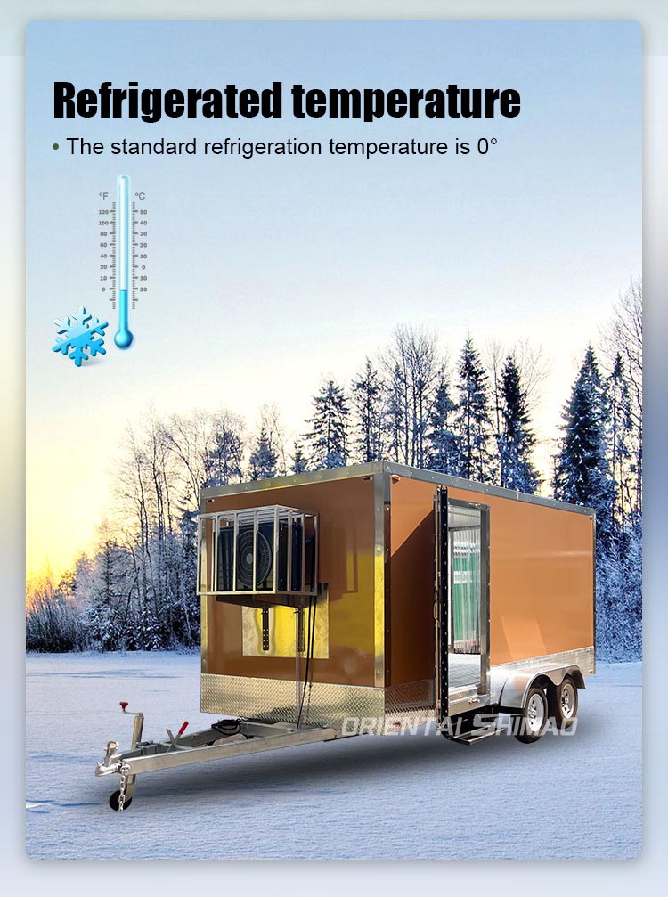 正確な温度制御:冷蔵トレーラーには、正の冷えた温度から最低-18°C(-0.4°F)で凍結まで、幅広い温度を維持できる調整可能な冷却システムを備えています。これにより、新鮮な農産物から冷凍品まで、多種多様な食料品の最適な保存が保証されます。