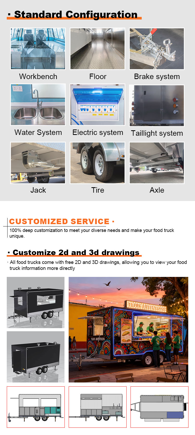 フードカートモバイルキッチン商業レストラン機器ケータリング電気食品トレーラーストリートユースフードトラック