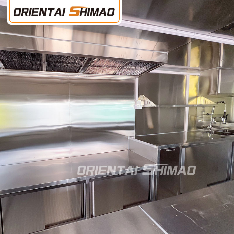 ステンレス鋼: ステンレス鋼も外装パネルの一般的な選択肢の 1 つであり、特に 304 食品グレードのステンレス鋼が挙げられます。ステンレスは耐食性、耐熱性に優れ、お手入れが簡単なため、フードトラックの厨房やカウンターなど食品に触れる場所での使用に適しています。同時に、ステンレス鋼の美しさはフードトラック全体の質感を高めることにもなります。