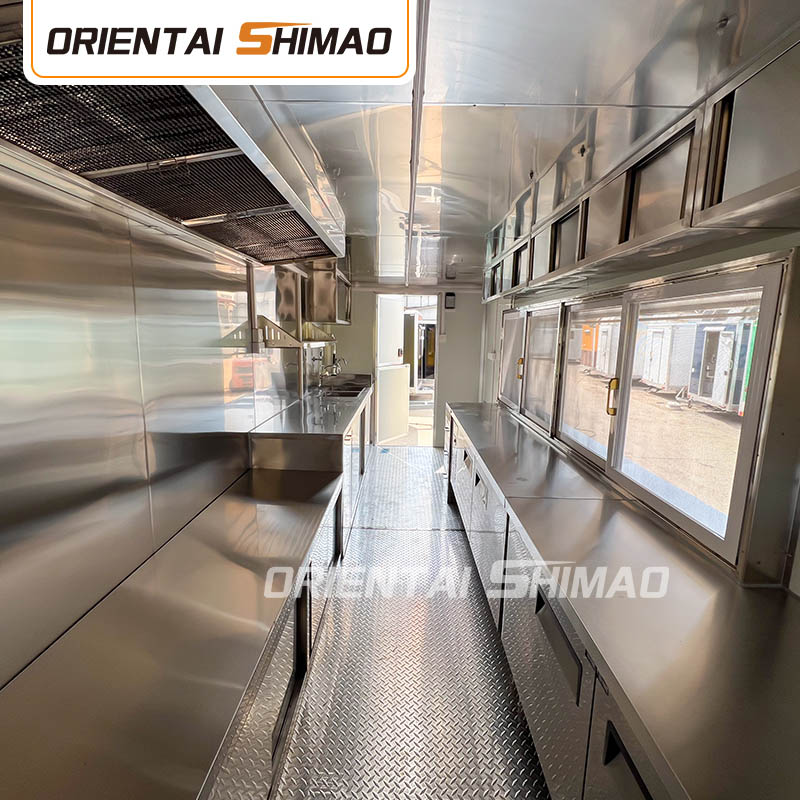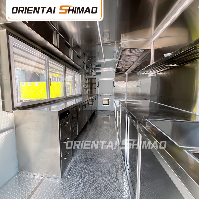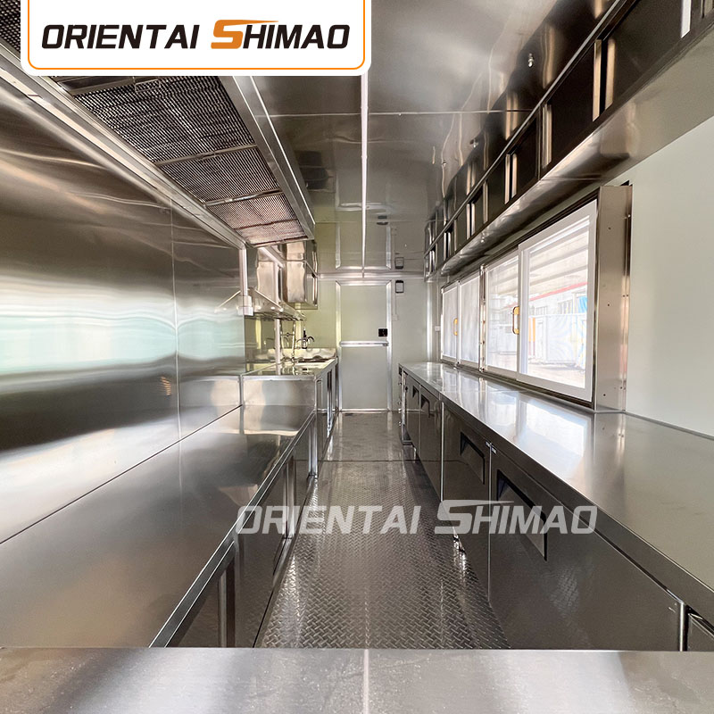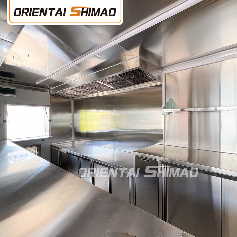 機能エリアの分割:調理エリア、販売エリア、ダイニングエリア、その他の機能エリアの分割の実際のニーズに従って、フードトラックの内部レイアウトが合理的で整然としていることを確認します。