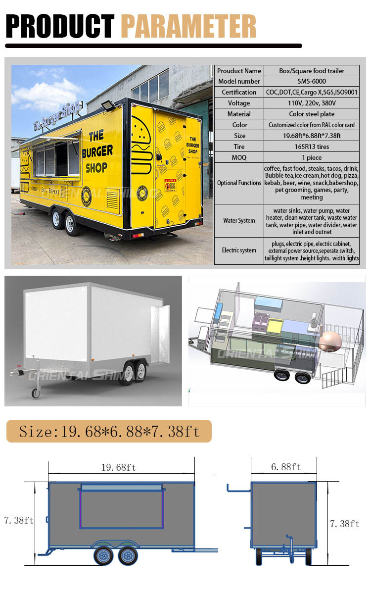 必要な製品情報を提供するだけで、当社のシニアセールスマネージャーが推奨製品を提供します。注文の最初から、当社のプロのデザインチームがあなたのドラフトに属するデザインを提供し、フードトラックの製造生産を開始します。想像力をフルに発揮して製品を内側から外側までカスタマイズできます。必要な機器を当社の側から購入することもでき、購入と選択の手間を省き、全体の生産を確立します。 サービスチームがいつでも問題を解決します。私たちはあなたのためにサービスチームを設立し、質問があればいつでも私たちと通信することができます。生産後、検査用のビデオを送信します。または、工場に来て商品を検査することもできます。ぜひお越しください。