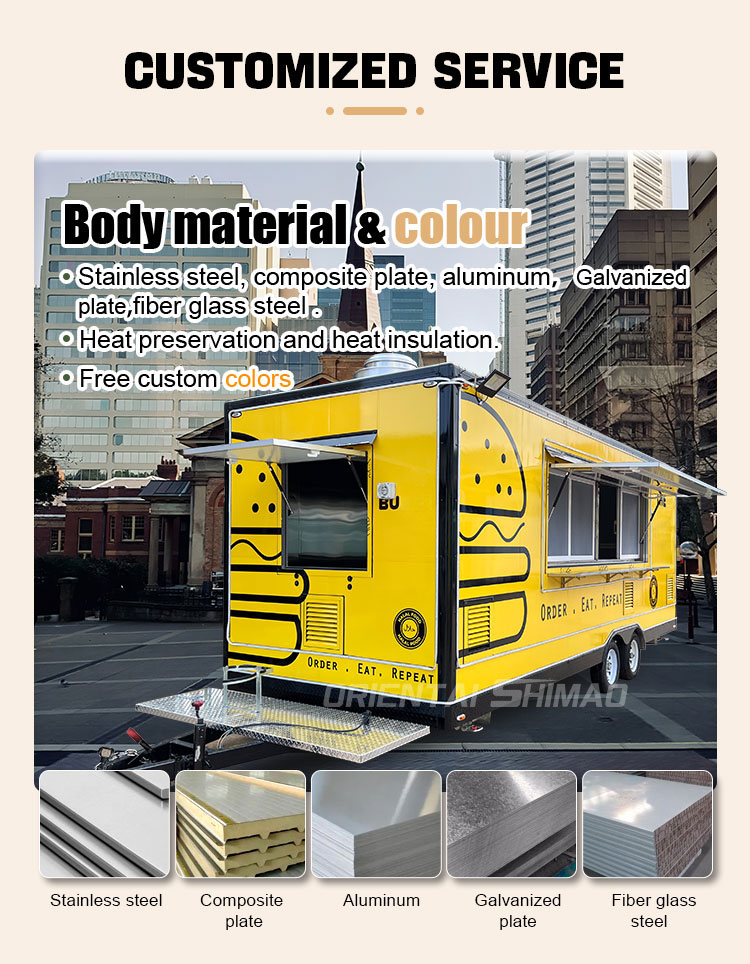 構造強度:フードトラックの用途と予想される荷重に応じて、鋼鉄やアルミニウム合金などの高強度材料を使用してフレームと本体構造を作成し、全体の堅牢性と耐久性を確保します。