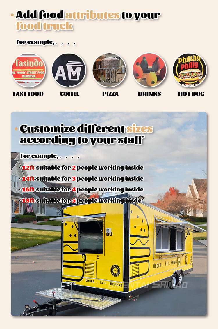 モダンなデザイン:外観デザインはシンプルで寛大で、滑らかなラインで、現代的な美的要素を組み込んでおり、フードトラックの全体的な質感を向上させるだけでなく、顧客の注目を集めるのも簡単です。