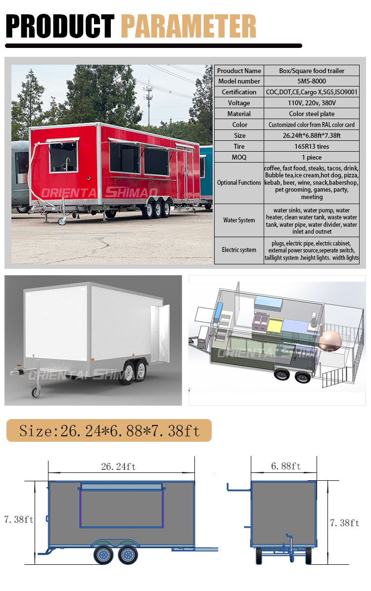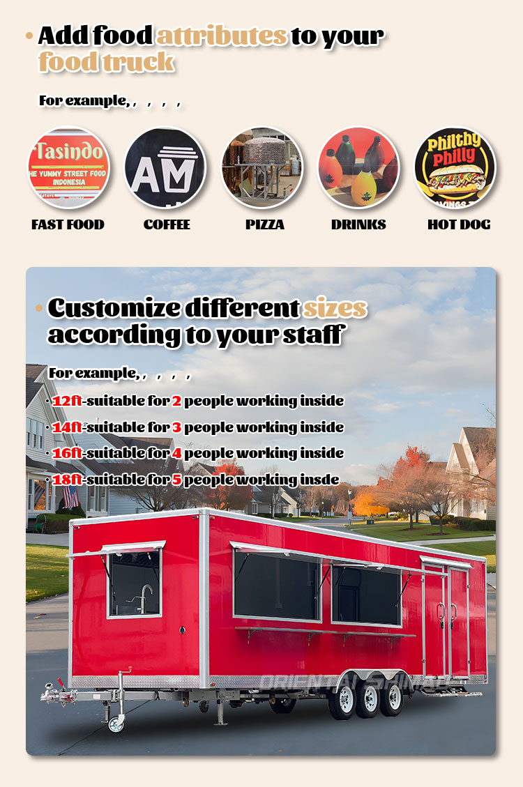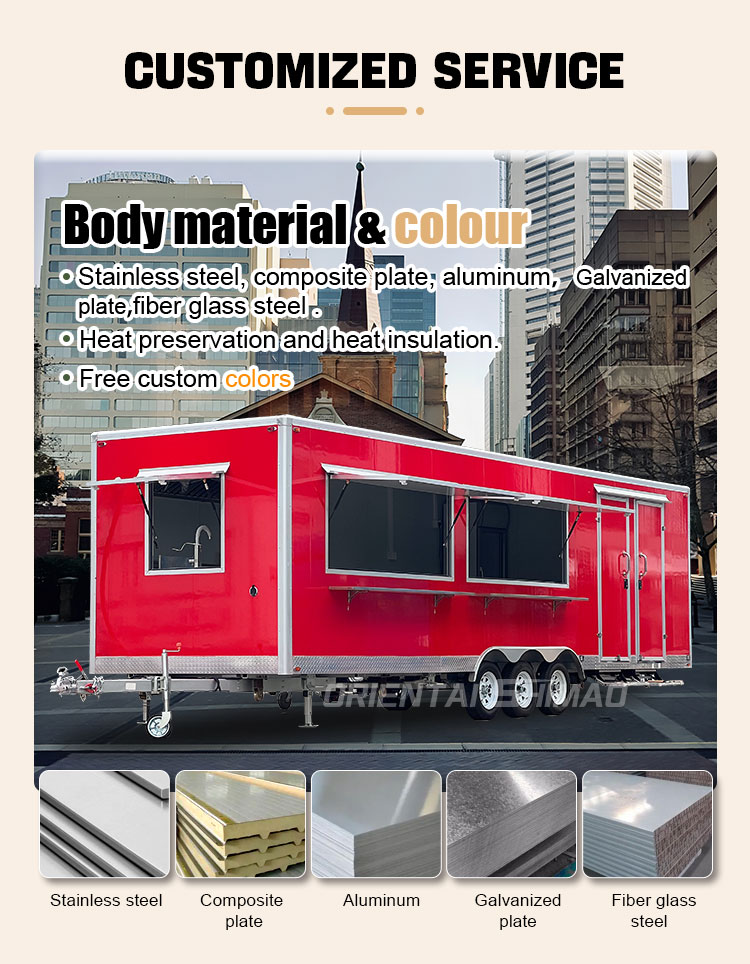 素材とプロセス:フードトラックの外観が美しく耐久性があることを保証するために、高品質の素材と高度な製造プロセスを選択してください。