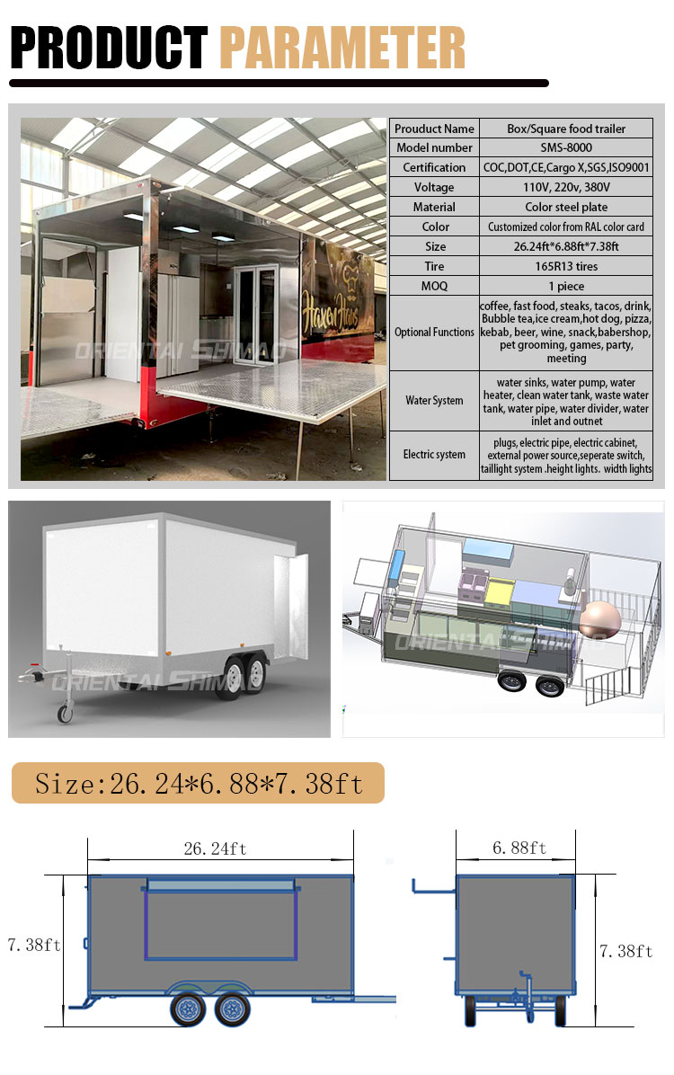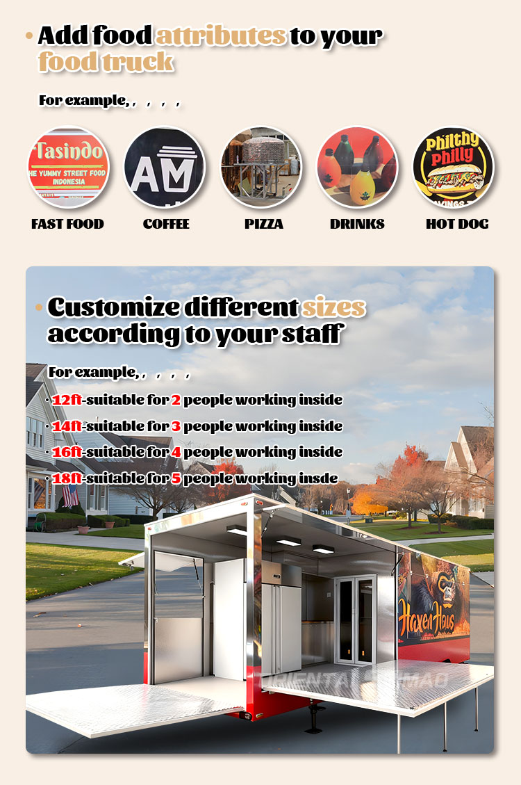 素材とプロセス:フードトラックの外観が美しく耐久性があることを保証するために、高品質の素材と高度な製造プロセスを選択してください。
